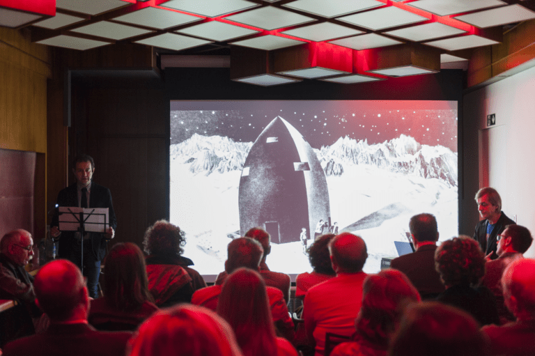 Raccogliendo e organizzando materiali storici e d’archivio, Massimiano Bucchi alla voce e Arturo Stàlteri alle tastiere ci racconteranno a loro modo la storia di una delle più grandi e suggestive imprese della tecnica e dell’umanità.