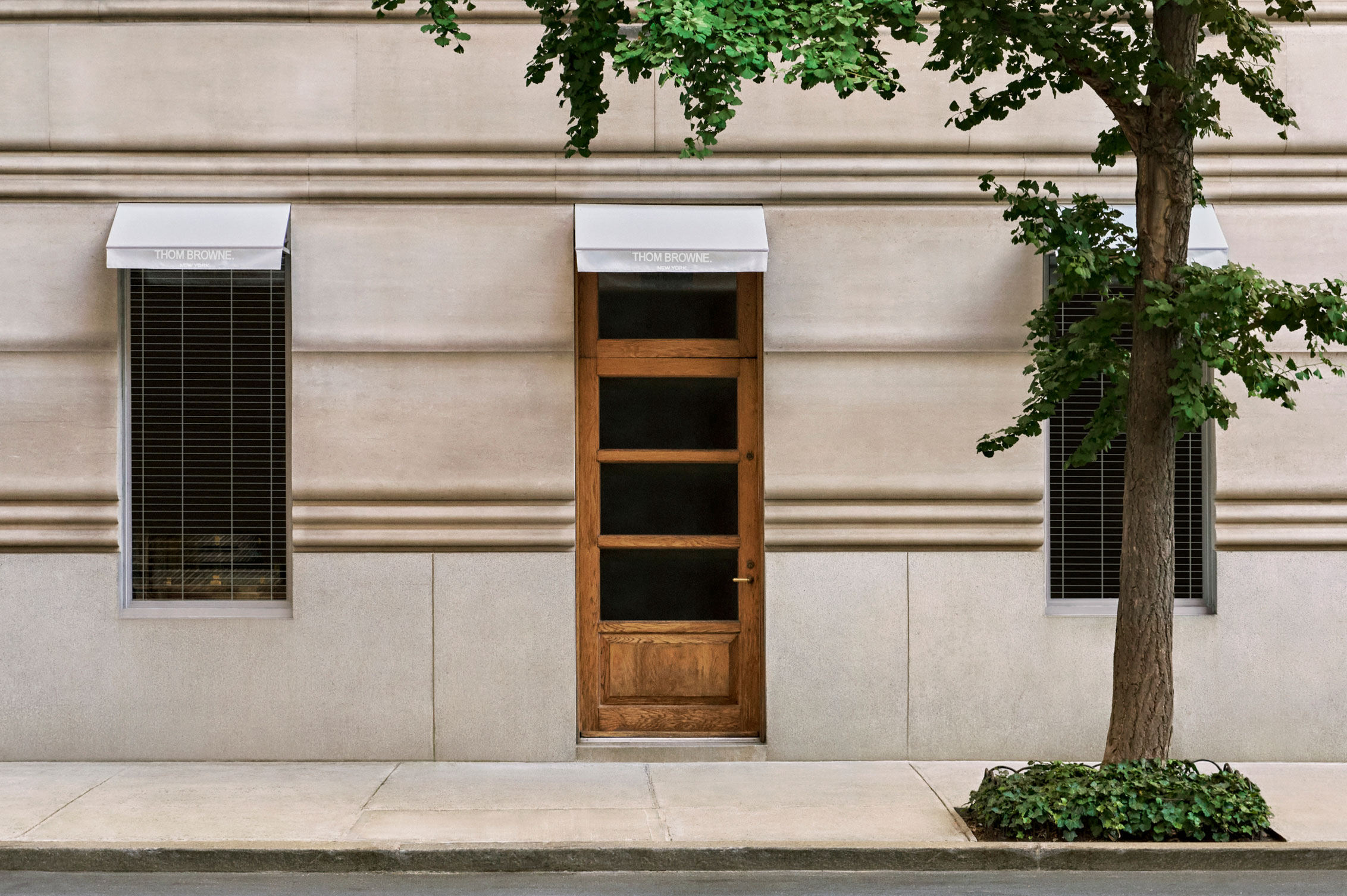 Il nuovo negozio Thom Browne SLT a Madison, New York, introduce nuove soluzioni come gli archivi a parete con ripiani in marmo che si integrano perfettamente con la parete. L'ingresso, con la sua piccola porta in legno, sembra dare accesso a una dimensione intima e privata, lontana dal trambusto dei grandi negozi monomarca.