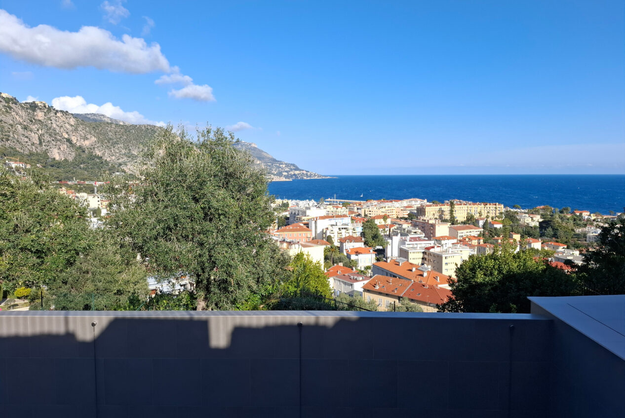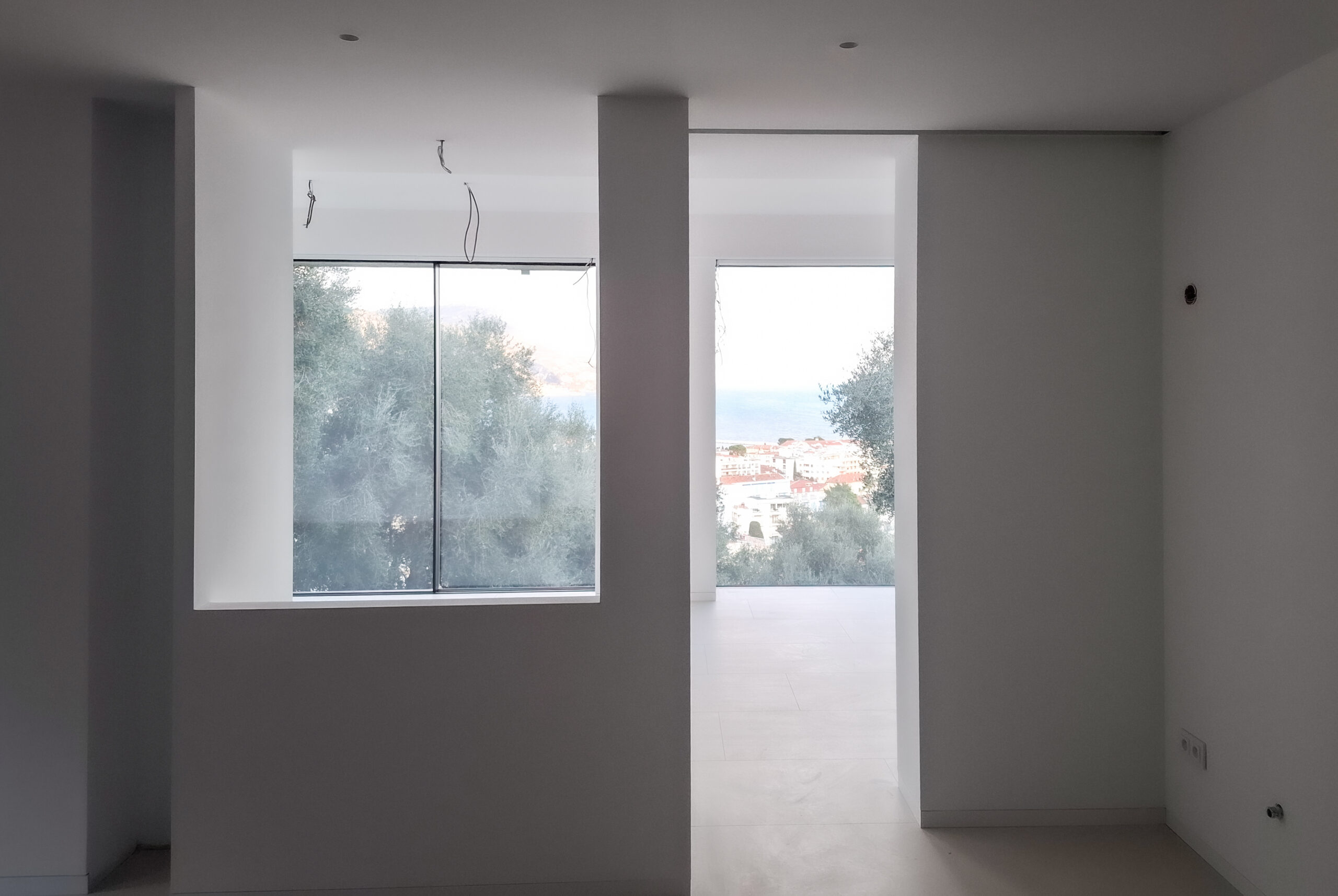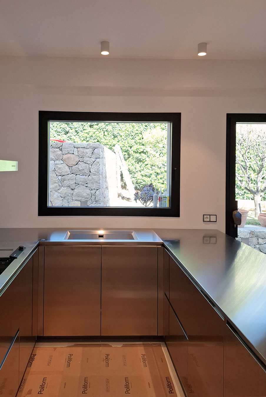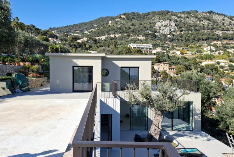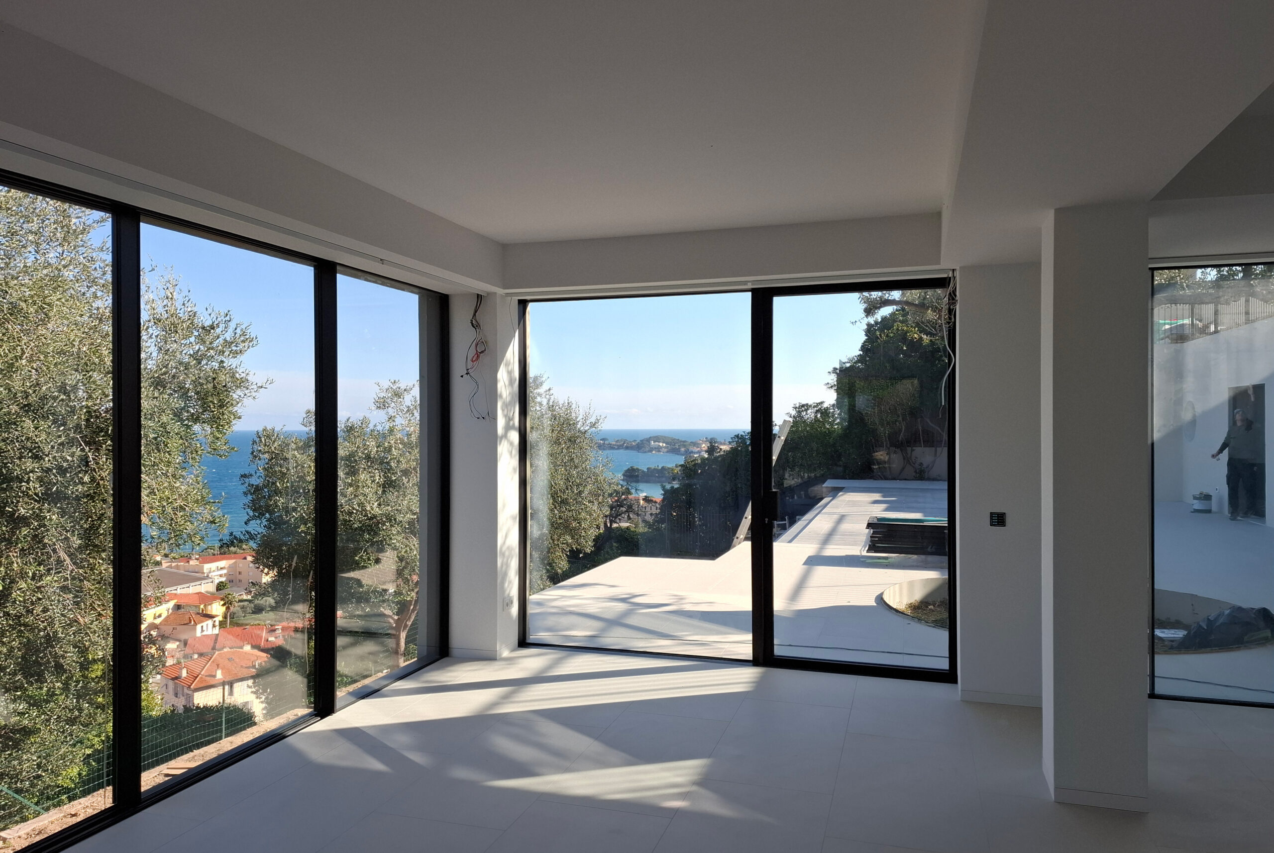 Anchored in the hills of the Côte d'Azur, a 1980s house is completely remodelled by emphasising the presence of the landscape through the use of large sky frames open towards the sea.